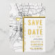 Une carte d'invitation "save the date" unique en vedette une carte de la ville de Baton Rouge, en Louisiane. Elle comporte plusieurs éléments uniques qui font une impression sur vos futurs invités, y compris les noms des mariés, le nom de la ville et les mots "Sauver la date" en feuille d'or. Un symbole de cœur en feuille d'or indique votre lieu d'amour dans la ville. La carte de la ville est sur les côtés avant et arrière et peut être mise à l'échelle et déplacée. Tous les éléments de cette invitation sont déverrouillés, alors amusez-vous à être créatif et à la rendre conforme à votre style.