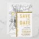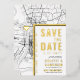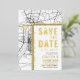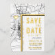 Une carte d'invitation "save the date" unique en vedette une carte de la ville de Baton Rouge, en Louisiane. Elle comporte plusieurs éléments uniques qui font une impression sur vos futurs invités, notamment les noms des mariés, le nom de la ville et les mots "Save the Date" en feuille d'or. Un symbole de cœur en feuille d'or indique votre lieu d'amour dans la ville. La carte de la ville est sur les côtés avant et arrière et peut être mise à l'échelle et déplacée. Tous les éléments de cette invitation sont déverrouillés, alors amusez-vous à être créatif et à la rendre à votre goût.