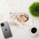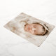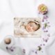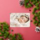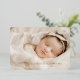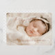Élégant script Invitation Baptême avec de vrais détails de feuille. Customisez avec vos photos et détails de baptême.