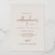 Une invitation classique et élégante à la douche de mariage avec un agencement simple avec "wedding shower" dans un griffon moderne sur une texture neutre en faux papier beige. Tout le texte sur le devant est en papier or rose. La disposition épurée et minimaliste fait de cette invitation une invitation à la wedding shower traditionnelle et formelle.