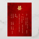 Cette élégante faire-part de mariage chinoise est ornée d'une photo et, une véritable feuille d'or rond symbole double bonheur sur un arrière - plan floral rouge rubis chatoyant. Noms de mariée et de mariée dans un élégant script manuscrit. Avec un texte chinois traditionnel à l'arrière.faire-part de mariage chinois ou l'invitation à la cérémonie du thé.
