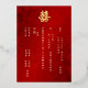 Cet élégant faire-part de mariage chinois présente une véritable feuille d'or artistique symbole double bonheur sur un arrière - plan floral rouge rubis chatoyant. Noms de mariée et de mariée dans un élégant script manuscrit moderne. Avec un texte à l'envers en chinois.
