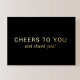 Elegant black 50th birthday thank you card. The front features "Cheers To You And Thank You" in a blend of classic serif and simple typography, rendered in your choice of genuine gold, silver, or rose gold foil. On the back, you can add a personal message and your name.