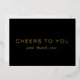 Elegant black 70th birthday thank you card featuring "Cheers To You And Thank You" in a blend of classic serif and simple typography, rendered in your choice of genuine gold, silver, or rose gold foil. On the back, add a personalized message and your name.