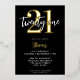 Une simple invitation moderne 21ème anniversaire avec une élégante typographie de script de calligraphie et un design minimaliste en noir avec feuille d'or.