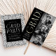 Invitation de remise de diplômes élégante avec les trois photos du diplômé situées à droite du design dans une mise en page verticale. "Grad" est affiché en véritable papier or art déco avec un arrière - plan noir. Personnalisez le devant de l'invitation moderne de remise de diplômes en photo en ajoutant le nom du diplômé, l'année de remise de diplômes et le nom de l'école. La conception inverse pour afficher les détails de votre fête de graduation avec un arrière - plan tourbillon géométrique noir et blanc. Parfait pour les bacheliers et collégiaux !
