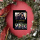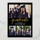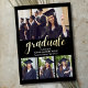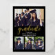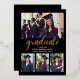 Lindo Diseño de Invitacion de Graduacion con collage de 4 fotos, Esta elegante tarjeta de invitación de graduación negra con letras metalizadas en color Oro y la invitación a la fiesta incluyen texto "Graduated" (el año se puede personalizar) en un moderno guión de caligrafía de Relieve metalizado con un moderno collage de fotos de cuatro fotos. El diseño de dos caras de la tarjeta incluye la redacción de la fiesta de graduación "Let's Celebrate" y detalles en la parte de atrás. Diseño clásico en blanco y negro con acentos dorados de color Relieve metalizado.