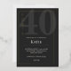 Invitation En Aluminium Black & Gold Forty/40th Birthday Celebration