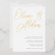 A beautiful typography based wedding invitation featuring your names in oversized gold foil script lettering at the top. Personalize with your wedding details in classic serif lettering aligned at the lower right. Our Ash colorway makes a classic statement with soft black and rich gold foil lettering on a crisp white background.
