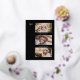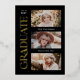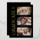 Cette faire-part de remise de diplômes élégante est aussi une invitation à une fête de remise de diplômes. Le devant présente le mot "gradué" dans la couleur de papier de votre choix sur un arrière - plan noir. Il dispose également d'espace pour trois photos ainsi que le nom du diplômé, l'année de classe et l'école. Le dos de la carte offre de l'espace pour une autre photo ainsi que des détails pour votre fête de remise de diplômes.