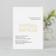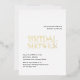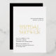 Invitation de douche nuptiale moderne avec un agencement minimal avec "Fête des mariées" en caractères gras au milieu. "Fête des mariées" est en papier d'aluminium et tout le texte restant est en noir et blanc. Tout le texte peut être modifié en feuille dans l'outil d'édition de conception. Cette simple mais élégante invitation à la douche nuptiale est idéale pour tout type de douche nuptiale.