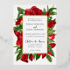 Un arrangement floral se trouve sous les détails de la cérémonie mariage pour cette adorable invitation aux fleurs rouges. Le cadre des détails est en papier peint (or, argent ou or rose). Le dos de l'invitation est blanc.