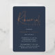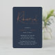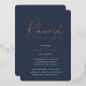 Invitations invités à célébrer le couple heureux avec ces invitations à dîner de répétition moderne et minimale avec des accents de papier de luxe. Un design simple propose un "dîner de répétition" en feuille d'or rose décontracté, avec les détails de votre événement sous un riche arrière - plan bleu marine.