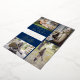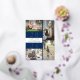 Pour un look simple et élégant, choisissez ce style de bloc de couleur bleu et blanc moderne, avant quatre photo graduation design faire-part avec de véritables accents de feuille d'or par Holiday Hearts Designs. Il vous suffit d'éteindre les photos de votre diplômé et d'ajouter ses détails (nom, école, année et date de fin d'études). Le dos est doté d'un arrière - plan noir solide.