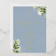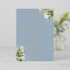 Invitation En Aluminium Bleu Poussiéreux Monogramme Baptême Vert Foncé Or