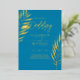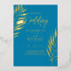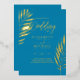 Invitation En Aluminium Blue Gold Tropical Leaf Destination Mariage