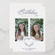 Blue Shades Birthday Real Silver 2 Photos Floral Heart Metallic Foil Invitation Card with Envelope.