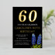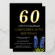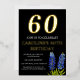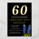 Bluebonnets aquarelle floral, fleurs du Texas, moderne, bleu marine et feuille d'or, élégantes invitations à 60e anniversaire. Vous pouvez le personnaliser avec vos propres détails.