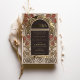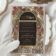 Invitation vos proches pour célébrer votre union avec cet exquis Faire-part de mariage islamique, avec un design Art Nouveau sophistiqué. L'invitation se targue d'un arrière - plan roux chaleureux aux accents vert sauge et doré qui dégage élégance et charme. La couverture avant est agrémentée d'un arbre stylisé de motif de vie, symbolisant la croissance et l'unité, flanquée de feuilles de lauriers et monogrammée avec les initiales du couple 'A' et 'S' dans un script d'or de bon goût. En tournant vers l'arrière, vos invités seront accueillis par un cadre magnifiquement détaillé avec des fleurs luxuriantes dans les tons de bleu, de sauge et de crème, enveloppant élégamment les détails essentiels de votre journée spéciale. Les détails dorés complexes et la calligraphie arabe traditionnelle fusionnent pour créer un mélange harmonieux d'héritage culturel et de beauté classique, parfait pour un mariage qui célèbre l'amour, la tradition et l'art.
