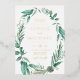 Invitations de mariage à thème Boho, idéal pour les mariages d'été. Famille d'Invitations et amis avec ce personnalisable feuille d'or de verdure pressé faire-part de mariage. Il présente des illustrations aquarelle de verdure, fougères, eucalyptus et succulents avec motif assorti. Personnalisez ce faire-part de mariage verdoyant en ajoutant vos détails mariages. Ce faire-part de mariage de feuille d'or est disponible dans d'autres finitions de feuille.