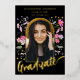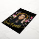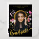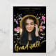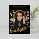 Célébrez la remise de diplôme universitaire ou de fin d'études secondaires de votre fille avec cette invitation de fête de remise de diplôme sous forme d'arche photo avec calligraphie à l'écriture moderne en or, tout simplement magnifique. Conçue par l'artiste Catherine Sweetman, cette carte présente une calligraphie élégante en feuille d'or et des fleurs sauvages aquarelles fantaisistes dans des tons rose, violet, jaune et lilas autour d'une arche élégante, capturant l'esprit de l'occasion. Le devant met en valeur le nom de votre fille et les détails de la remise de diplôme dans un script élégant en feuille d'or sur fond noir, tandis que le verso offre un espace pour des informations supplémentaires dans une typographie moderne et élégante. Avec un modèle de photo facile à utiliser, vous pouvez personnaliser la carte avec une photo précieuse de votre diplômé. Ce design unique et