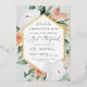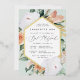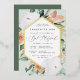 L'élégante invitation à la bat mitzvah florale présente un cadre hexagonal allongé de fleurs d'aquarelle et de feuillage dans des tons de pêche, blanc, ivoire et vert sauge inspirés du désert de saumons boho, et finie par un garnissage en feuille d'or. Personnalisez avec votre temple ou la cérémonie de synagogue et les détails de la fête en lettres modernes.