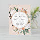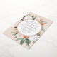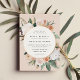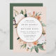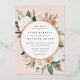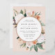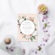 Une élégante faire-part de mariage fleurie présente vos détails mariages en lettrage moderne, sertie dans un cadre rond de fleurs pastel aquarelle et feuillage botanique dans des teintes terre inspirées du désert de pêche, vert sauge, blanc et ivoire. Le garnissage en feuille d'or rose complète la recherche d'une touche de luxe.