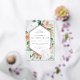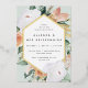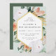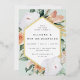 L'élégante invitation au déjeuner ou au brunch à la bride fleurie présente un cadre hexagonal allongé de fleurs d'aquarelle et de feuillage dans des tons de pêche inspirés du désert de saumons, blanc, ivoire et vert sauge, et fini avec des garnitures en feuille d'or. Personnalisez votre brunch ou votre déjeuner avec votre femme de chambre en lettres modernes.