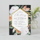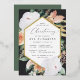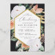L'élégante invitation à baptiser floral présente un cadre hexagonal allongé de fleurs d'aquarelle et de feuillage dans des tons de pêche inspirés du désert du boho, blanc, ivoire et vert sauge, et fini avec des garnitures de feuille d'or. Personnalisez avec votre cérémonie d'église et les détails de la fête de baptême dans des lettres modernes.