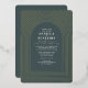 Un design unique avec plusieurs lignes d'arc délicates entourant vos informations de faire-part de mariage en feuille d'or estampillée, sur un arrière - plan vert foncé