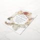 Invitations de mariage tropicales modernes avec vos noms à l'intérieur d'un cadre géométrique en feuille d'or avec un arrière - plan blanc. Des fleurs tropicales et des feuillages entourent le cadre dans des tons terreux de crème, de bronze, de beige, de rouille, de brun et de vert sauge. Les invitations à un mariage de sauge tropicale renversent vers un arrière - plan d'aquarelle vert clair.