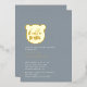 Cette charmante invitation au baby shower en feuille d'or présente un motif d'ours adorable, parfait pour célébrer l'arrivée d'un nouveau petit. Le design est doux et fantaisiste, avec les mots "bonjour bébé" en baby shower invitation ajouter une touche ludique à l'ensemble. Idéal pour une douche sans distinction de genre, cette invitation ravira les clients et donnera le ton pour une joyeuse célébration de la nouvelle arrivée.
