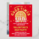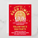 Cette invitation de fête à la feuille d'or rouge présente une boule à facettes et une typographie rétro, lui donnant une ambiance amusante et ludique. Le devant de l'invitation est orné d'un fond noir et d'une boule à facettes scintillante, d'étoiles, de danseuses qui donnent le ton à une célébration animée et énergique. La typographie rétro ajoute au thème, donnant à l'invitation une atmosphère nostalgiquement chic. Au verso de l'invitation, une photo personnalisée de la fille de la fête ajoute une touche personnelle au design.