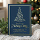 Partagez votre joie avec cette invitation de fête de vacances avec un arrière - plan de la marine profonde avec une double bordure en feuille d'or et un arbre de Noël dessiné à la main. "Holiday Party" brille dans la coordination du lettrage doré, créant un design sophistiqué et intemporel. L'association marine et dorée offre un look élégant et polyvalent, parfait pour des dîners de vacances, des rassemblements festifs et des célébrations professionnelles.