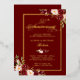 Invitation En Aluminium Bourgogne Rouge Floral 50e anniversaire Mariage Or