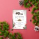 Illustration de maman et de bébé buffle entourés d'étoiles avec des illustrations de montagnes et de cactus floraux.