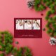 Annoncez vos nouveautés dans le style avec notre Elegant Script photo enregistrer la carte de date. L'élégant enregistrer les cartes de date affiche 3 de vos photos fiançailles préférées encadrées en Bourgogne avec "enregistrer la date" dans un script de calligraphie moderne feuille d'or. Personnalisez la carte en ajoutant vos noms, votre date de mariage et votre emplacement de mariage. Le minimaliste enregistrer la carte de date revient à un arrière - plan bordeaux solide ou une couleur de votre choix.