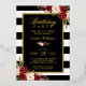 Customisé cette "Burgundy Floral Black Stripes Real Foil Invitation" pour égaliser votre invitation d'anniversaire. Si vous souhaitez obtenir un échantillon avant de passer votre commande complète, vous pouvez commander une seule carte (quantité de 1) pour voir son apparence. Pour plus d'informations sur cette carte, veuillez consulter la section "A propos de ce produit".