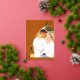 Arc Orange Brûlé Bohème Véritable Huile d'Or Minuscule Photo Feuille Enregistrer la Carte Date Avec Élégante Calligraphie.