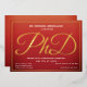 Une invitation à la fête de doctorat avec feuille d'or, texte blanc, et un arrière - plan orange brûlé. Ajoutez simplement vos informations, ajoutez cette invitation à votre panier et célébrez cette réalisation majeure. Burnt Orange Gold PhD Graduation Foil Invitation Conception de jour férié | ©Melissa Patton - Designer