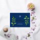 Classy moderne horizontale heureux vacances entreprises à la fois d'imprimer latéralement carte de voeux plat avec un endroit pour votre logo avec élégant classique aquarelle feuilles de noël et vrai doré cadre pressé et heureux texte de vacances sur un arrière - plan bleu marine. Carte de voeux de Noël parfaite pour les entreprises, les petites entreprises, les entreprises à domicile, les employés, les entreprises de vacances ou toute organisation, le design moderne donnera à vos clients l'impression de luxe et de succès. Le côté arrière a un libellé personnalisé. Ce modèle de carte Happy Holidays est prêt pour votre personnalisation en ligne. La feuille d'or peut être changée en or ou argent rose.