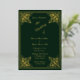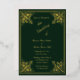 Un cadre élégant et romantique d'huile d'or sur un arrière - plan vert de la forêt avec du texte de couleur or sur ce magnifique faire-part de mariage. Cadre et texte orné de votre choix si vous souhaitez modifier la police. L'Arrière - plan est un choix de couleur vert forêt. Il peut être modifié à n'importe quelle couleur que vous choisissez aussi. Vient avec des enveloppes blanches
