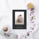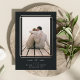 Un design moderne et minimaliste garde le design de la date avec des accents géométriques chics. Votre photo verticale est encadrée par une double bordure géométrique en feuille d'or rose, avec vos détails mariages en dessous. Un accent de script de calligraphie éthérée ajoute une touche de douceur à ce design simple et minimal. Ajoutez des détails supplémentaires au dos coordonné couleur, comme votre site Web mariage.