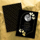 Un faire-part de mariage au design magnifique inspiré des bijoux en or, avec un cadre avec des feuilles et votre photo. Cette invitation moderne affiche élégamment votre message personnalisé et votre photo à l'intérieur d'une bordure dorée qui tourne en haut et est pointé en bas, avec des branches et des feuilles placés contre un arrière - plan noir. Pour ajouter une touche unique, les noms du couple sont présentés en or sur un arrière - plan noir dans un arrangement incliné sur le dos. La couverture a été conçue à l'aide d'actifs de Freepik.com
