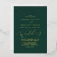 Cette délicate carte de faire-part de mariage émeraude en feuille d'or est parfaite pour un mariage moderne. Le design minimaliste romantique présente une typographie de papier doré pressé de luxe, belle et élégante, à l'allure simple et épurée.