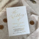 Cette délicate invitation à la feuille d'or calligraphie mariage est parfaite pour un mariage moderne. Le design minimaliste romantique présente une typographie de papier doré pressé de luxe, belle et élégante, à l'allure simple et épurée.