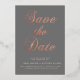 Elégante et élégante invitation à la calligraphie simple avec torsion d'or rose. Mise en page moderne avec script personnalisé "enregistrer la date" en or rose avec police moderne pour toutes les informations et bordure rose or en bas sur un arrière - plan gris