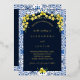 Personnalisez ce faire-part de mariage italien méditerranéen – Parfait pour un mariage estival en destination, ce faire-part élégant capture la romance de l'Italie avec une arche vibrante de citrons de la côte d'Amalfi jaunes entrelacés de verdure luxuriante, sur un fond de carreaux italiens classiques bleus et blancs. La police moderne et manuscrite en feuille d'or ajoute une touche de luxe, ressortant magnifiquement sur un fond bleu marine chic. Idéal pour les couples qui rêvent d'une célébration inspirée de la Méditerranée, ce design apporte le charme des fruits d'agrumes, une élégance intemporelle et la romance italienne à votre jour spécial.