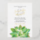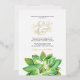 Ces invitations en feuille métallisée apportent une touche élégante et bohème à votre mariage ou dîner de répétition, avec vos noms dans un élégant script manuscrit en feuille métallisée associé à une typographie sérif classique charbon. Une bordure de verdure aquarelle et de succulentes dans des tons doux de vert ajoute une touche naturelle et moderne, tandis que le verso présente une teinte saumon complémentaire pour une finition chaude et sophistiquée.
