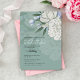 Ce design de mariage vert sauge élégant est créé pour les couples qui apprécient les florales intemporelles et le luxe raffiné. Les pivoines blanches douces et les détails botaniques délicats sont associés à une véritable feuille de luxe, ajoutant une texture subtile en relief et une finition lumineuse qui procure une sensation vraiment spéciale.